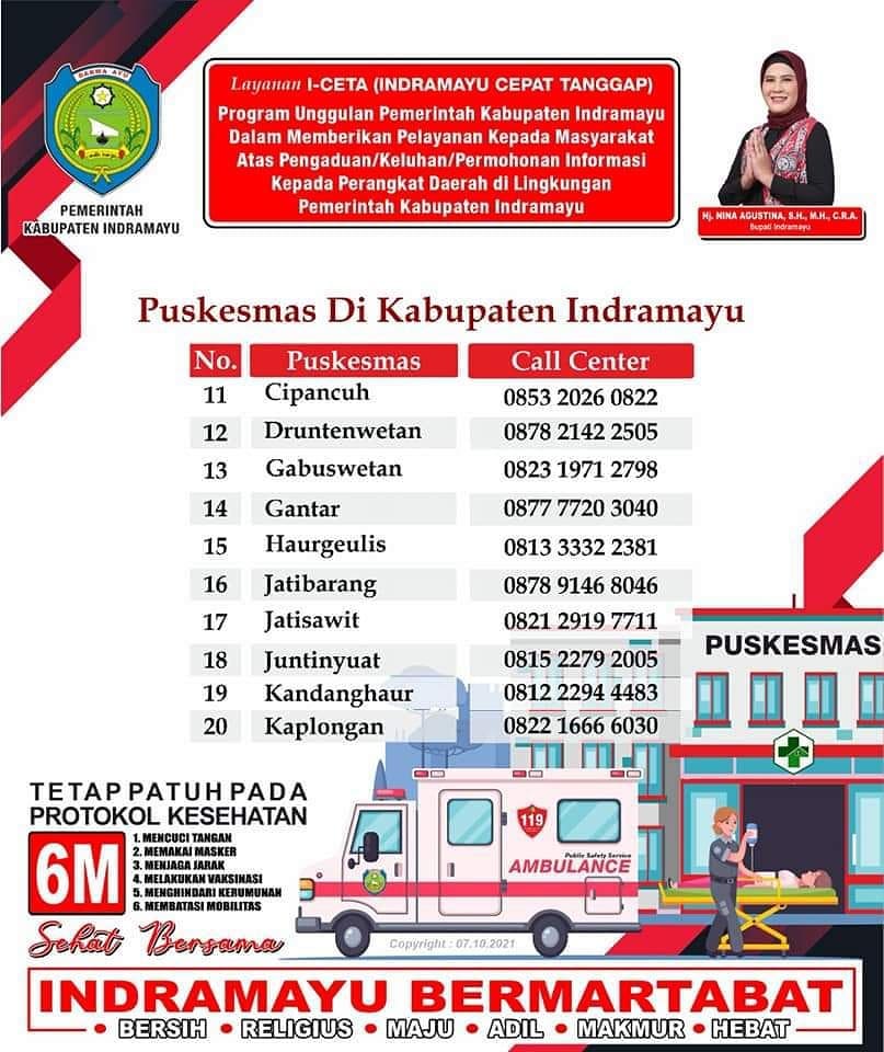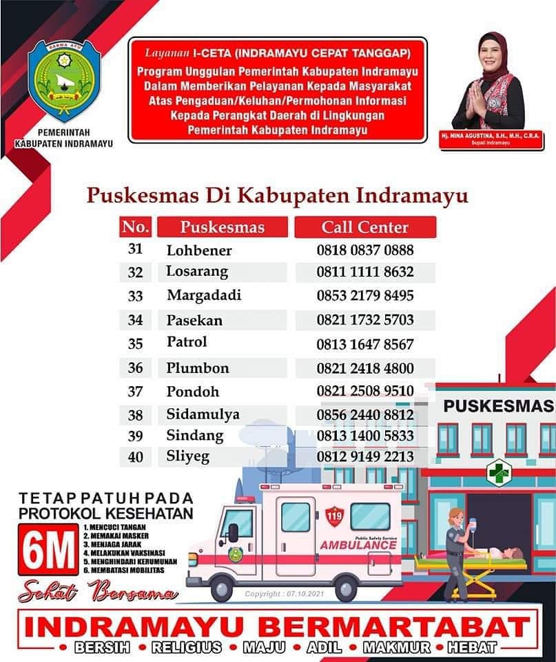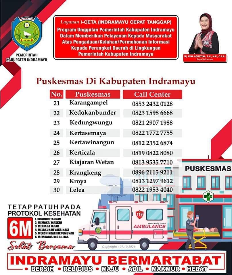Indramayuinfo.com – Buat kalian masyarakat Indramayu yang sedang membutuhkan informasi mengenai Call Center Puskesmas Di Seluruh Kabupaten Indramayu kalian bisa dapatkan disini.
