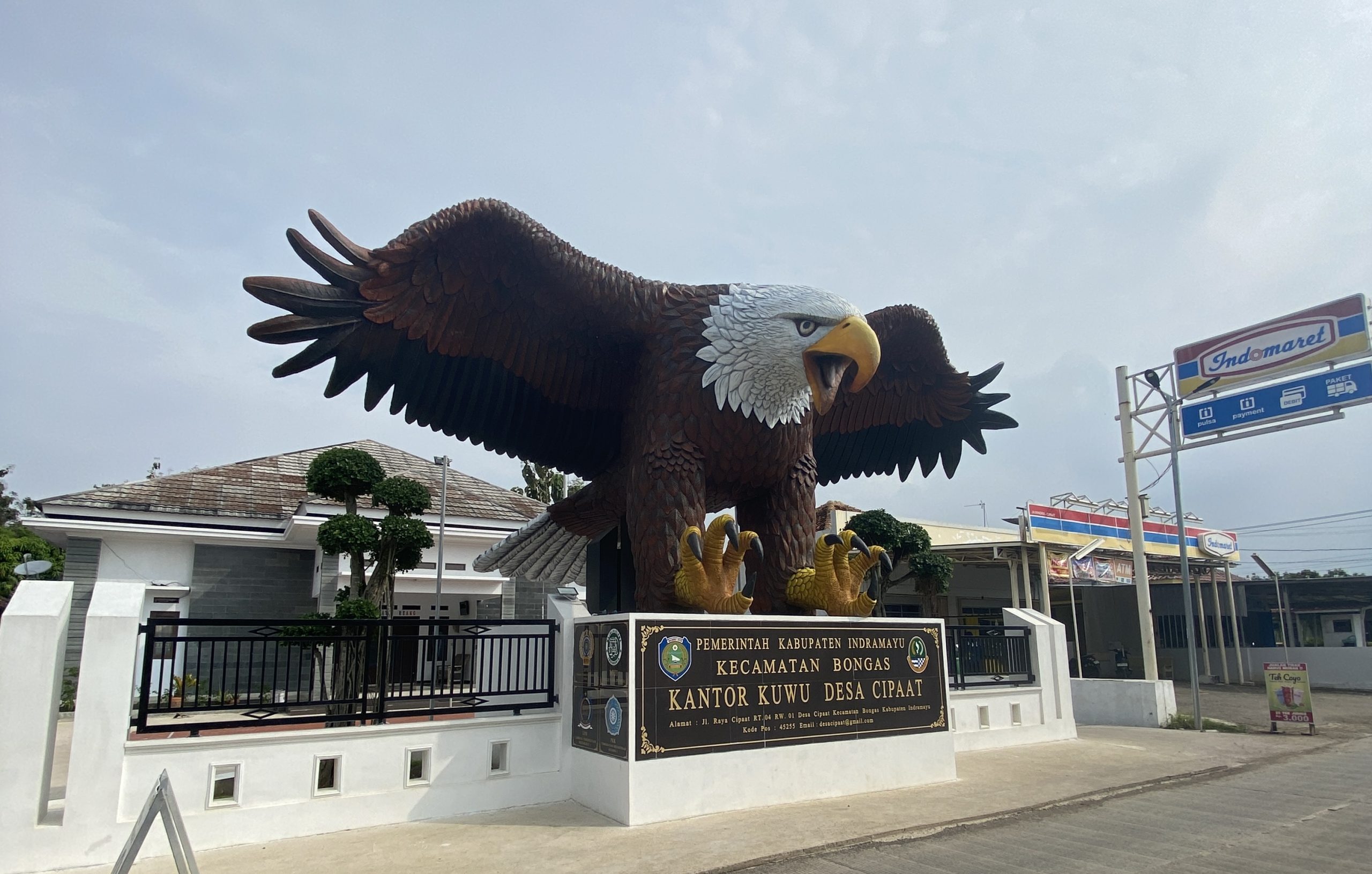 Indramayuinfo.com – Kalau di Wonosobo ada tugu patung Biawak yang sedang viral, di Indramayu juga ada Patung Rajawali yang sedang Viral. Patung tersebut berlokasi di depan Kantor Desa Cipaat Kecamatan Bongas.